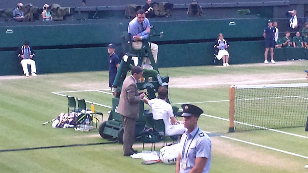 Andy Murray's reaction to decision for roof to be closed mid-game in Wimbledon semi-final against Jerzy Janowicz.