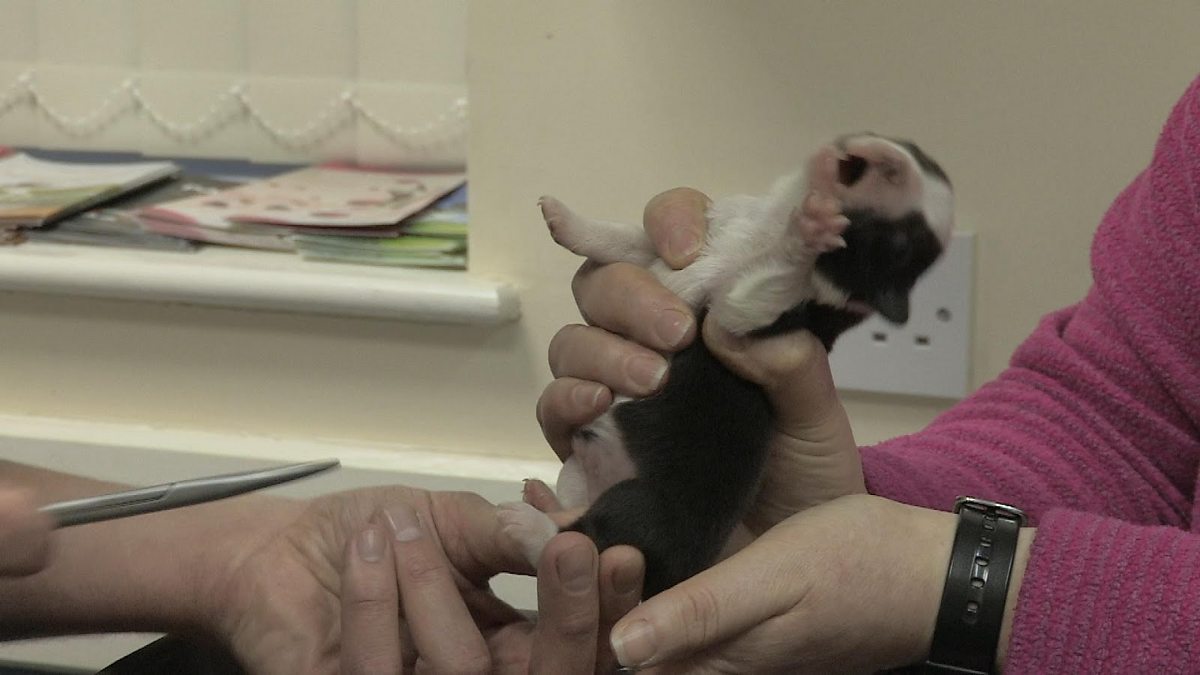 Three of Smartie's pups come in for a pedicure with Vet Gareth