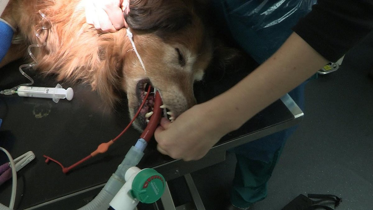 Vet David prepares to carry out life changing surgery for Sandy