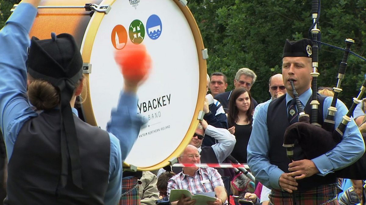 Cullybackey Pipe Band perform in the grade 1 competition at the All Ireland Championships.