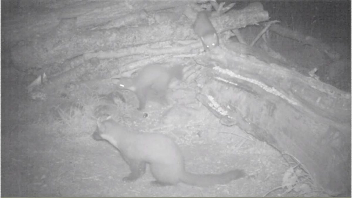 Night camera trap of the unknown Pine Marten family at 00:00 on 9th July 2013. Courtesy FSC Kindrogan Field Centre.