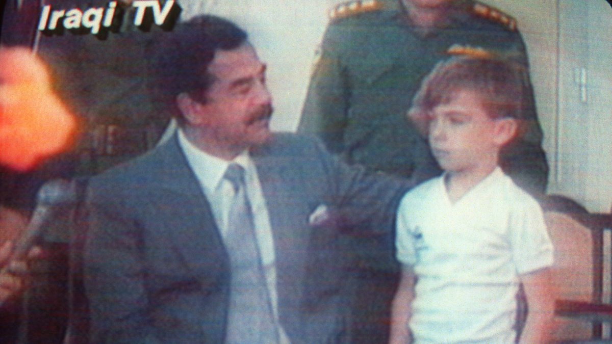 Photo: Iraqi President Saddam Hussein patting 5 year old Stuart Lockwood, 23 August 1990, Baghdad AFP/Getty Images.