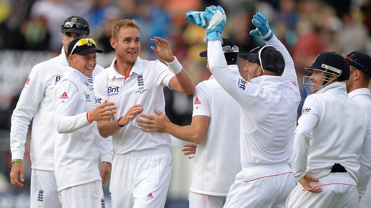 Australia's Michael Clarke is out for 21 to the bowling of Stuart Broad.