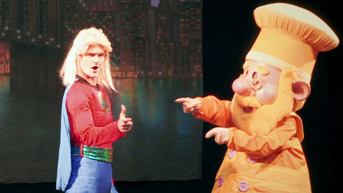 Tom displays his performance skills as he takes on the role of superhero 'Justin Incredible' in the Metrocentre's Metrognomes show.