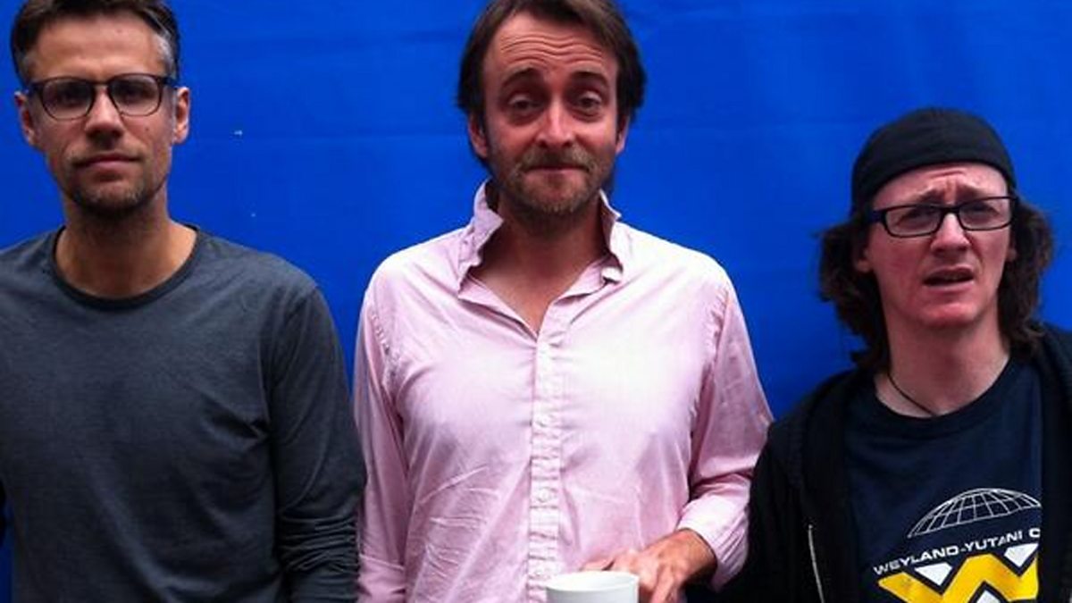 Edinburgh Festival guests Richard Bacon, Tim Fitzhigham and Ed Byrne.