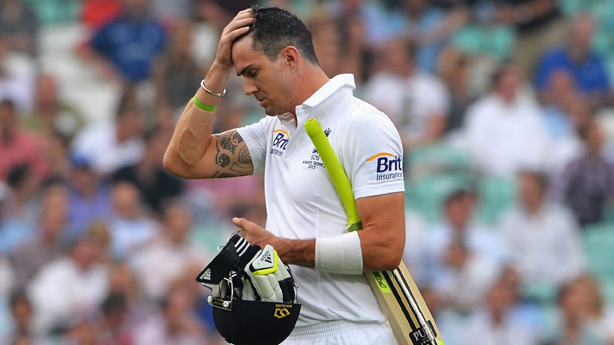 England's Kevin Pietersen falls to Mitchell Starc caught by Shane Watson.
