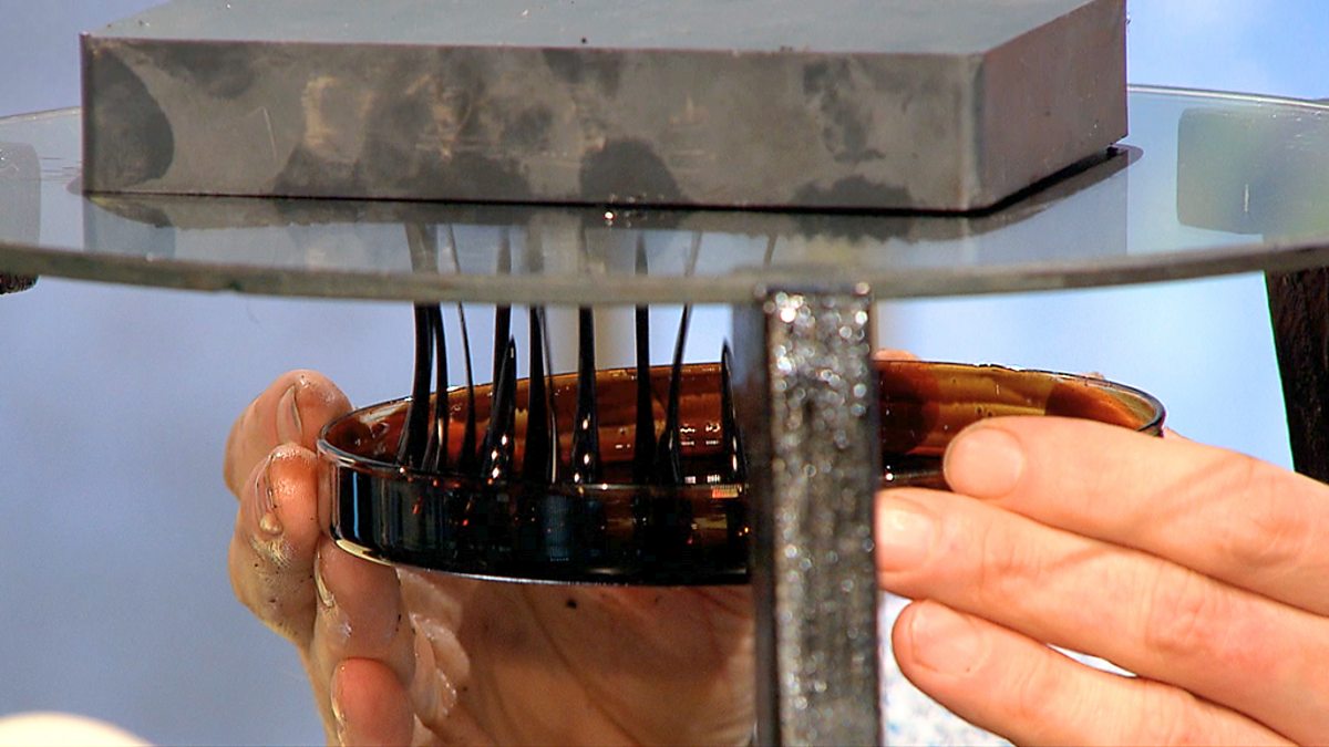 Dara and Mark investigate ferro-fluids - liquids containing microscopic magnets - and how one potential use might be to help us clear oil slicks.