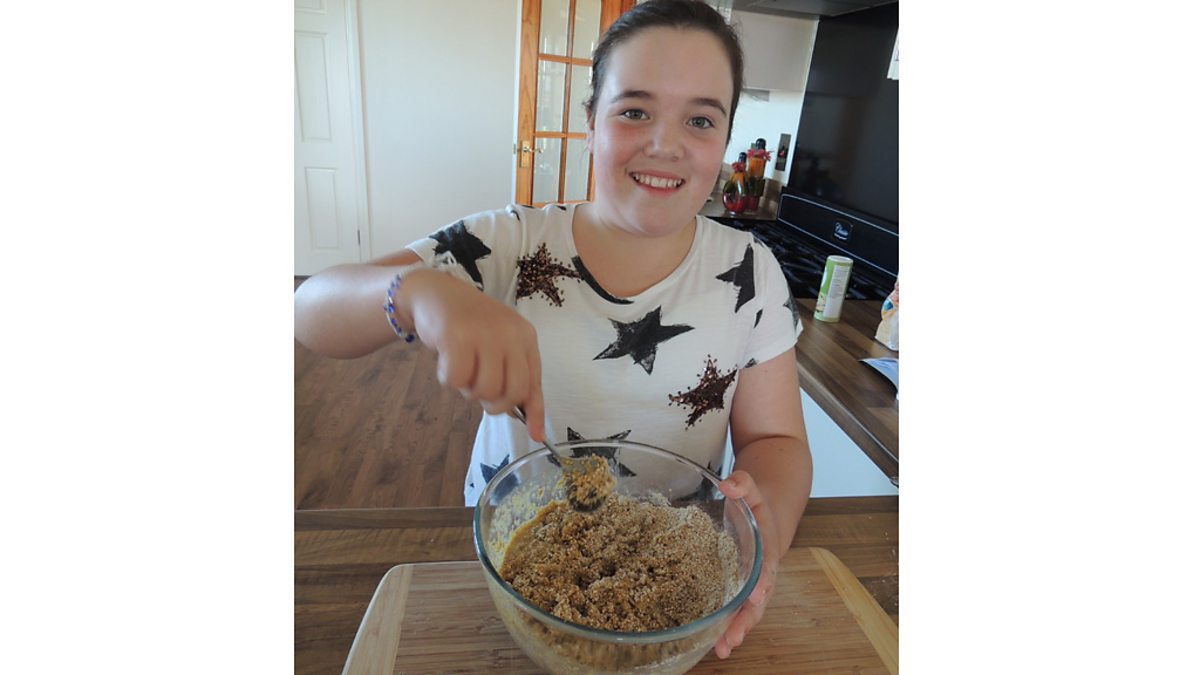 Bèic dha Pudsey - Laura às An Rubha a' bèicearachd aran-coirce.