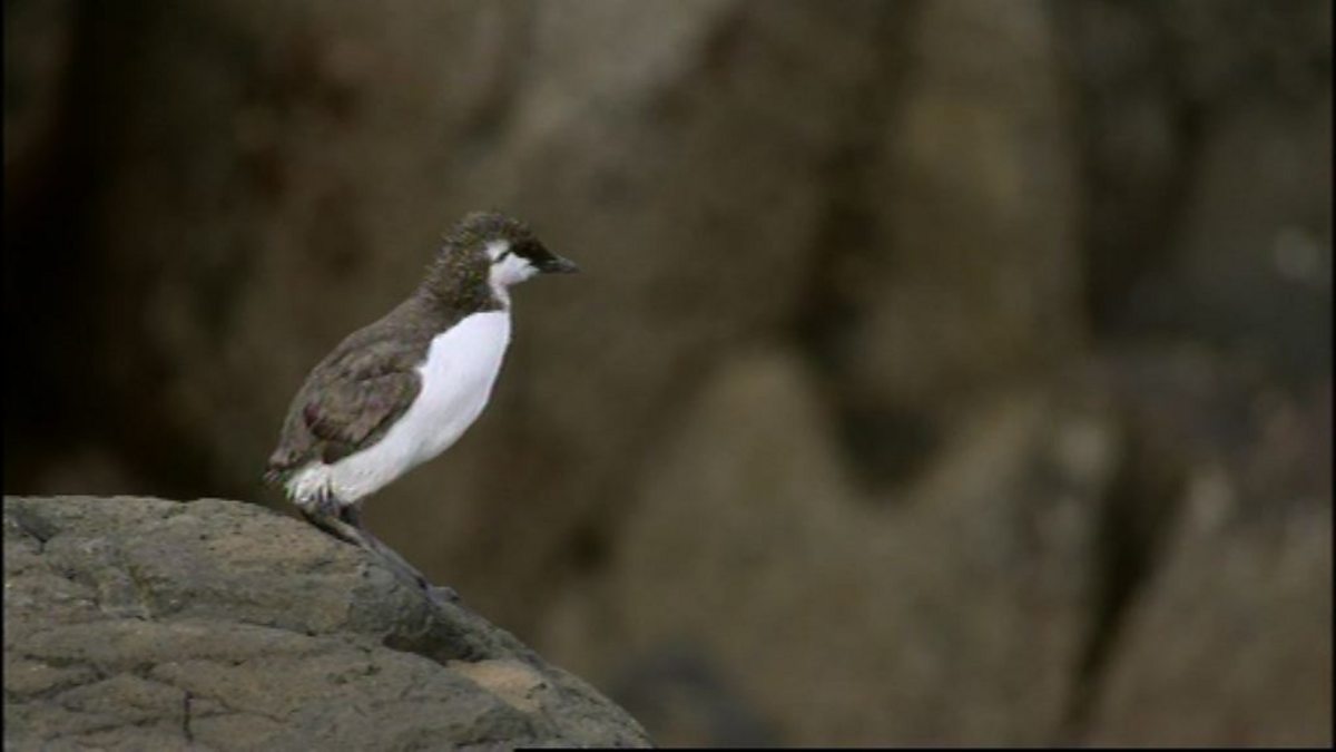It is a long and dangerous way down to the water for guillemot chicks.