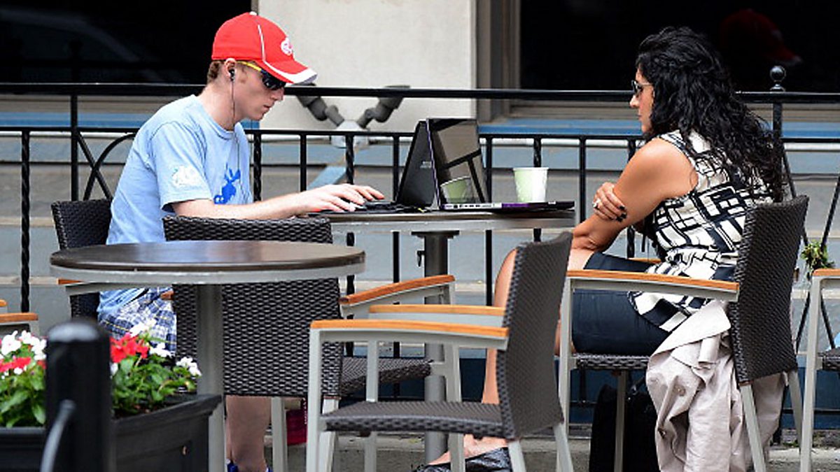 (Photo: A man and a woman in a cafe using their laptops © AFP/Getty Images)