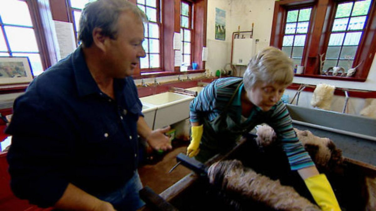 Located in the former laundry building on the Torrisdale Castle Estate, the Torrisdale Tannery specialises in the production of naturally coloured sheepskins and deer skins using an ancient tanning method that produces a superior skin. The odour-free tanning method uses only organic materials, tree bark, salt and water. Euan gets a tanning lesson from Tannery owner Mary Macalister Hall.
