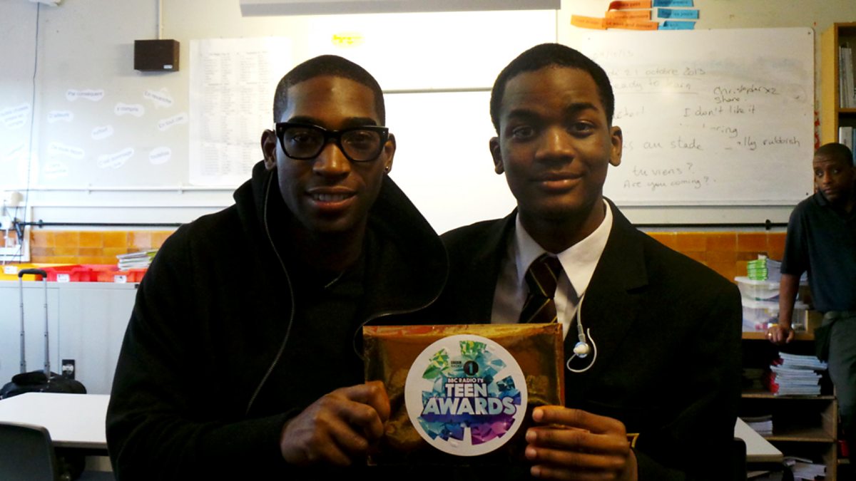 Tinie Tempah interrupts school assembly to tell Jeremiah he is our first Teen Hero winner