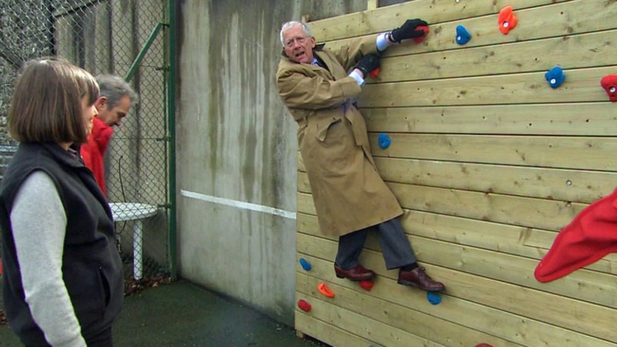 Nick gives the climbing wall a go at the barn but his technique is all wrong!