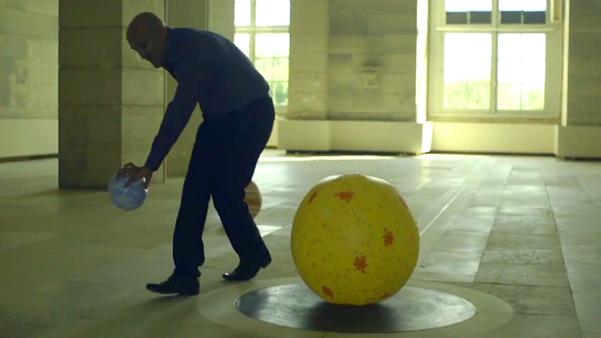 At the Paris Observatory, Prof Jim Al-Khalili uses inflatable planets to show how the Danish astronomer Ole Romer discovered that light travels at a finite speed.