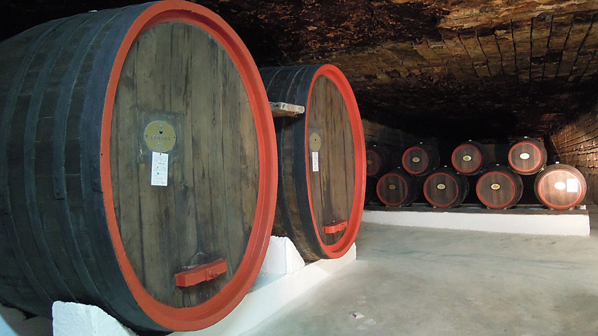 (Image: Oak barrels of wine in Cricova’s subterranean winery. BBC copyright)
