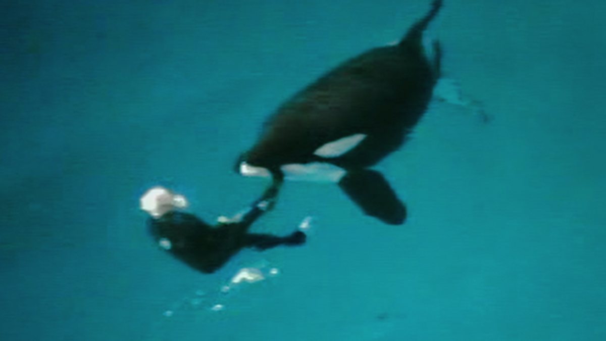 Kasatka the orca whale drags down his trainer