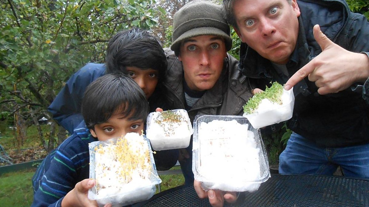 Dick and Dom head out into a rainy garden with their helpers to find out about the science of soil and plants. Their first investigation involves worm-charming - testing two techniques known to bring worms to the surface of the soil. Other experiments explore how plants get water from the soil, and the best germination conditions for growing a healthy box of cress.