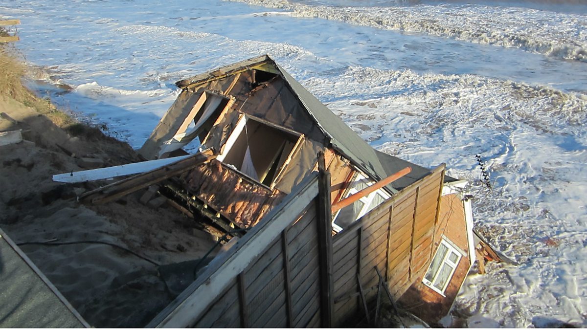 Steven Connolly, who has lived in a beach chalet in Hembsy in Norfolk for the last seven years, speaks about how he returned from the pub to find it collapsing into the sea.