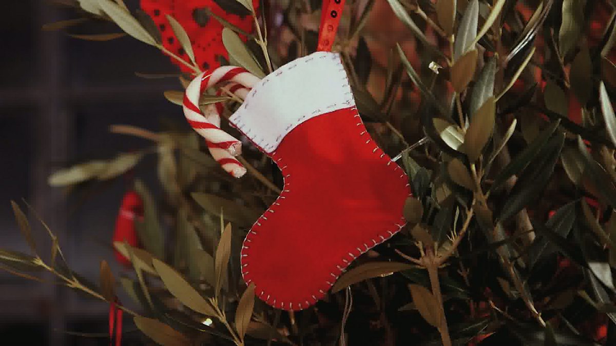 Sewing Bee judge May Martin demonstrates how to sew a mini Christmas stocking tree decoration which can be filled with sweets or a surprise gift.