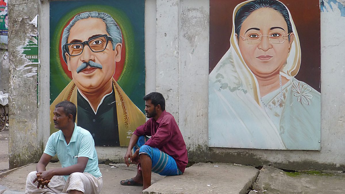 (Image: A mural of Sheikh Mujibur Rahman, the founding father of Bangladesh, and his daughter Sheikh Hasina, the current prime minister of Bangladesh. BBC copyright)