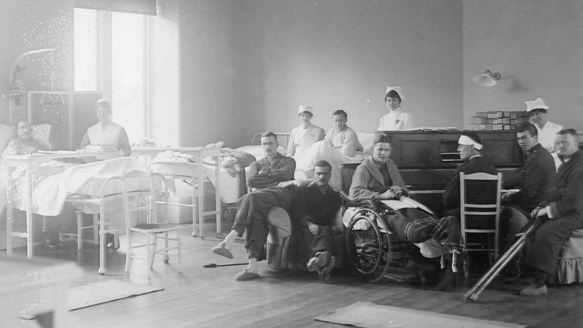 Picture: WW1 patients recuperating in hospital in 1918, Credit: Topical Press Agency/Getty Images