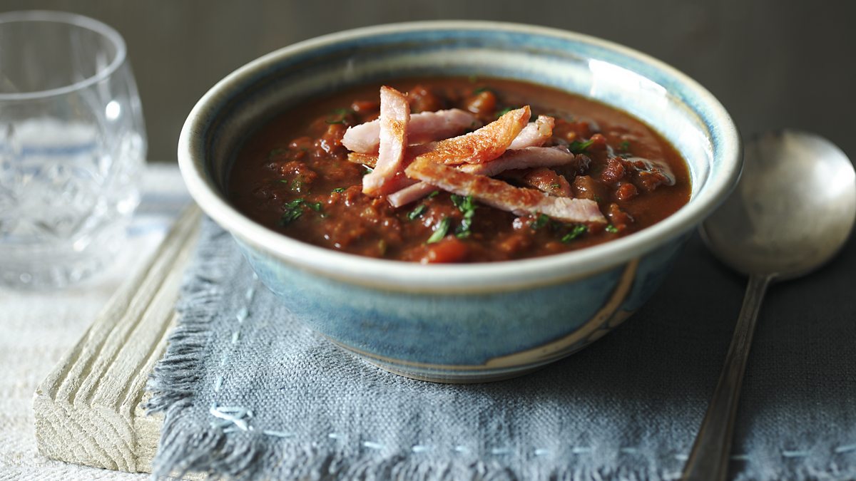 Healthy lentil and bacon soup