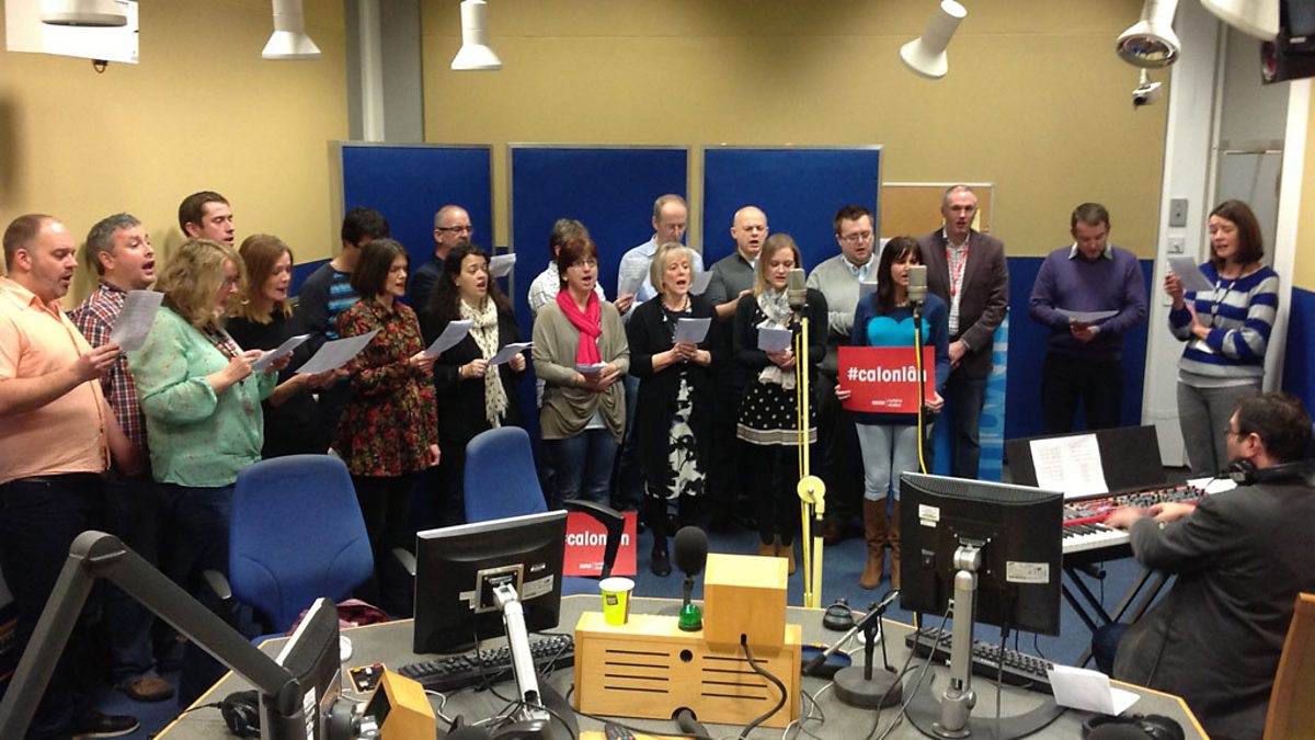 Côr Radio Cymru yn canu Calon Lân ar raglen Dafydd a Caryl.