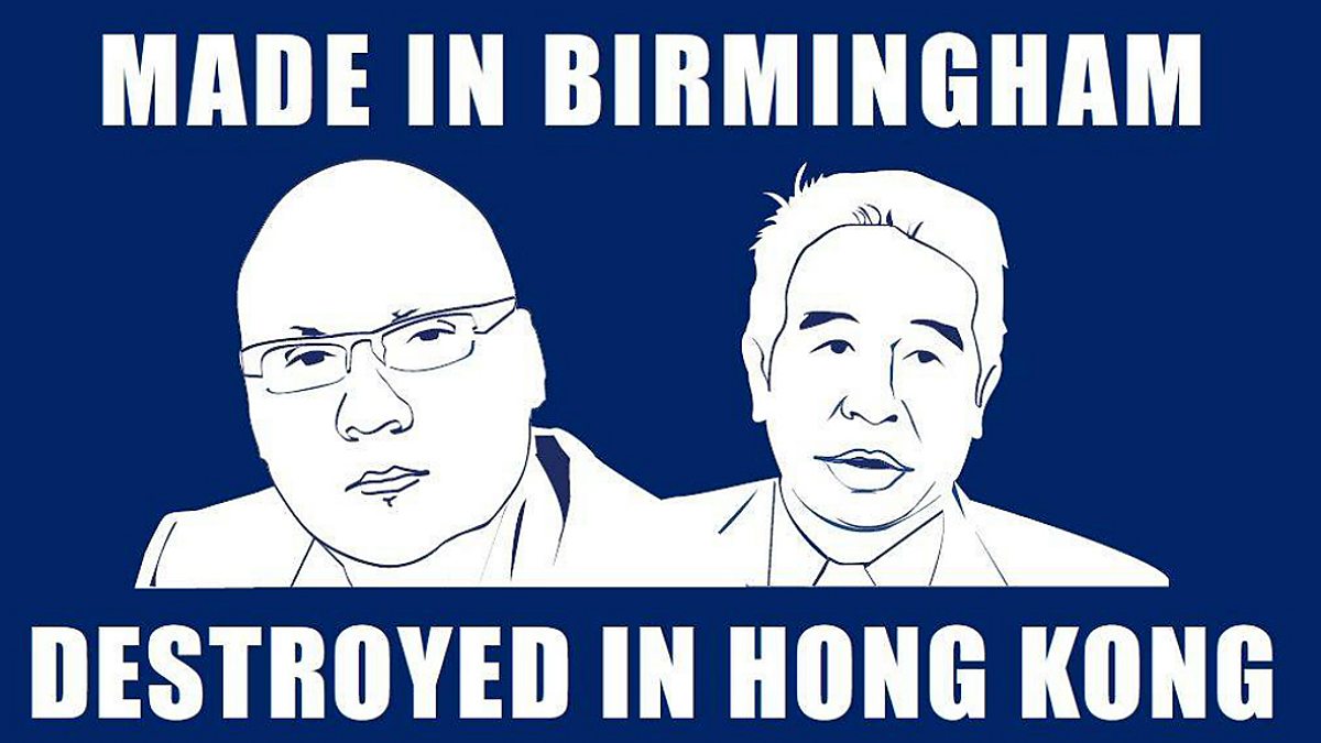 A banner, which read 'Made in Birmingham, Destroyed in Hong Kong' was passed around the kop.