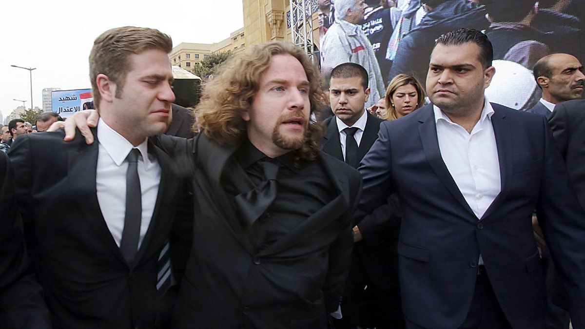 (Image: Omar (left) and Ronnie Chatah (centre) at their father's funeral. Credit: Associated Press)