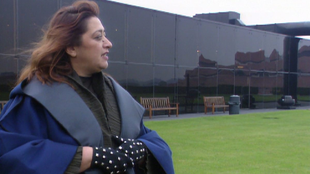 Architect Zaha Hadid admires the roof garden of Sir Norman Foster’s Willis Corroon.