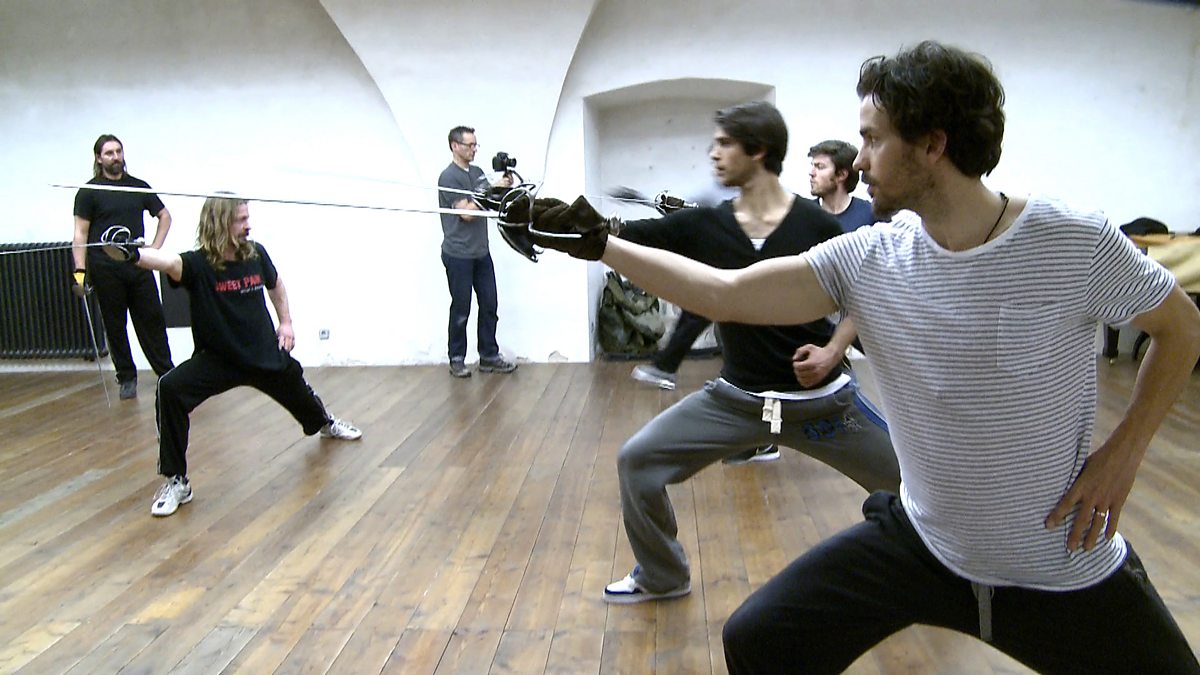 Behind the scenes: The boys train with a sword master, horse master and stunt coordinator.