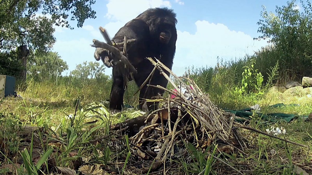 Kanzi the bonobo lives in America and has learnt how to build a fire, light it using matches, and toast marshmallows on it. It shows just how like us some primates really are.