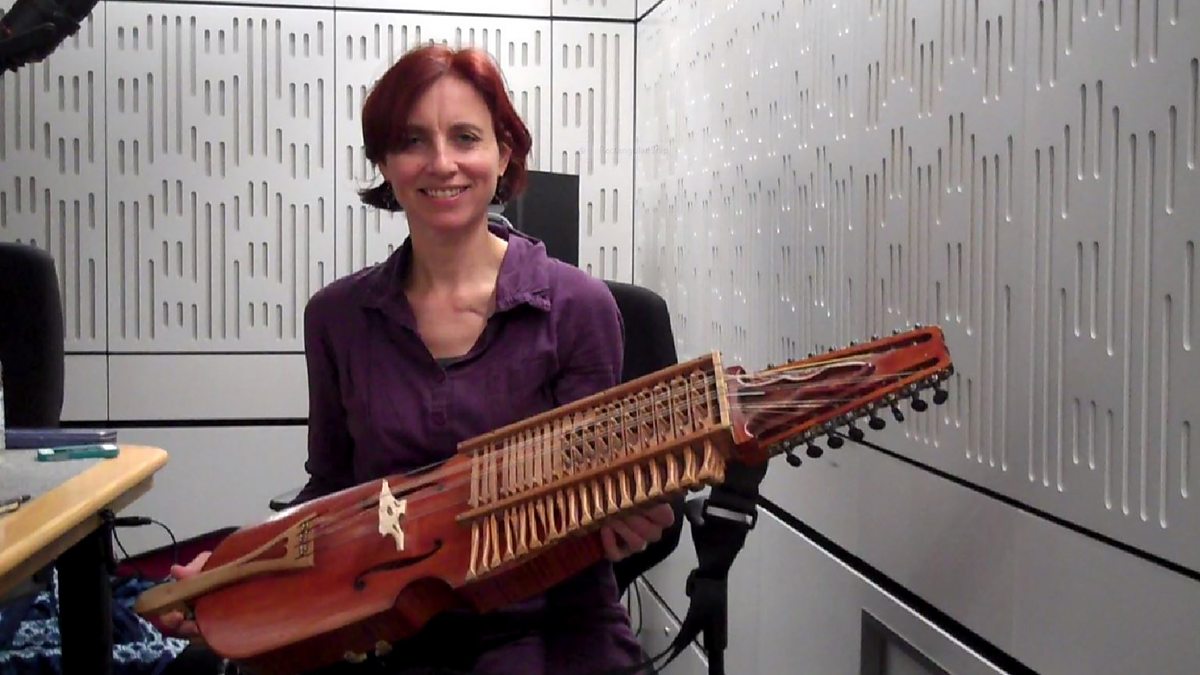 Clare Salaman demonstrates the Nyckelharpa or 'keyed fiddle'