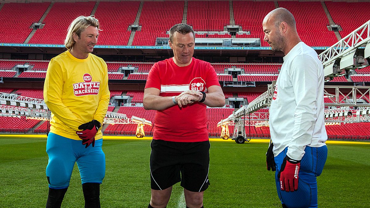Robbie Savage and Alan Shearer are going head to head, and buttock to buttock, in a Sport Relief challenge: The Battle of the Backsides, where they have to sit on 90,000 seats at Wembley Stadium, 45,000 each.