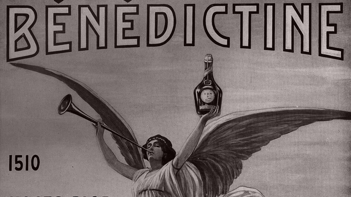 Image shows advertising for the French liqueur Benedictine Excerpt of 'The theater' in July 1913 (Photo by Apic/Getty Images)