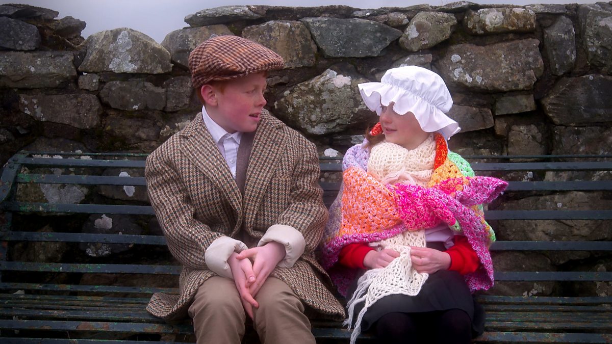 Pupils of Ysgol Gynradd Bro Hedd Wyn, tell the story of the bard Hedd Wyn, killed at war before knowing he’d won the Eisteddfod Chair at Birkenhead.