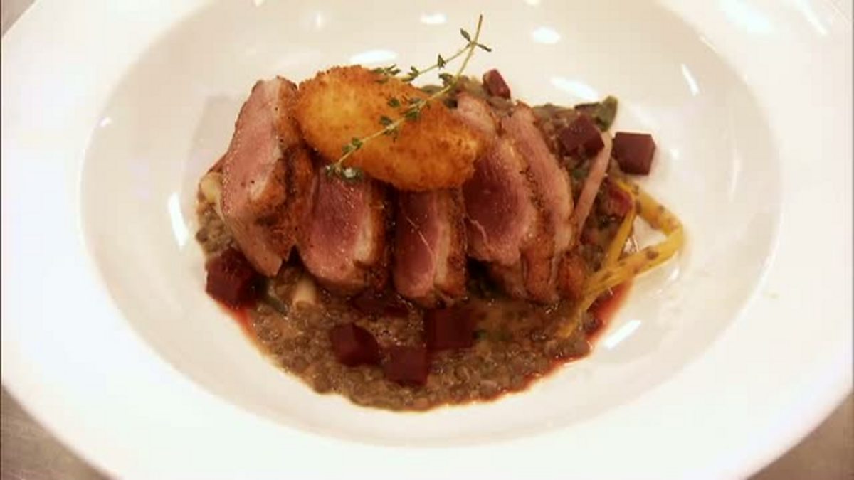 John has one hour to create a dish from a box of savoury ingredients.Will his pan-fried duck breasts meet with Gregg's approval?
