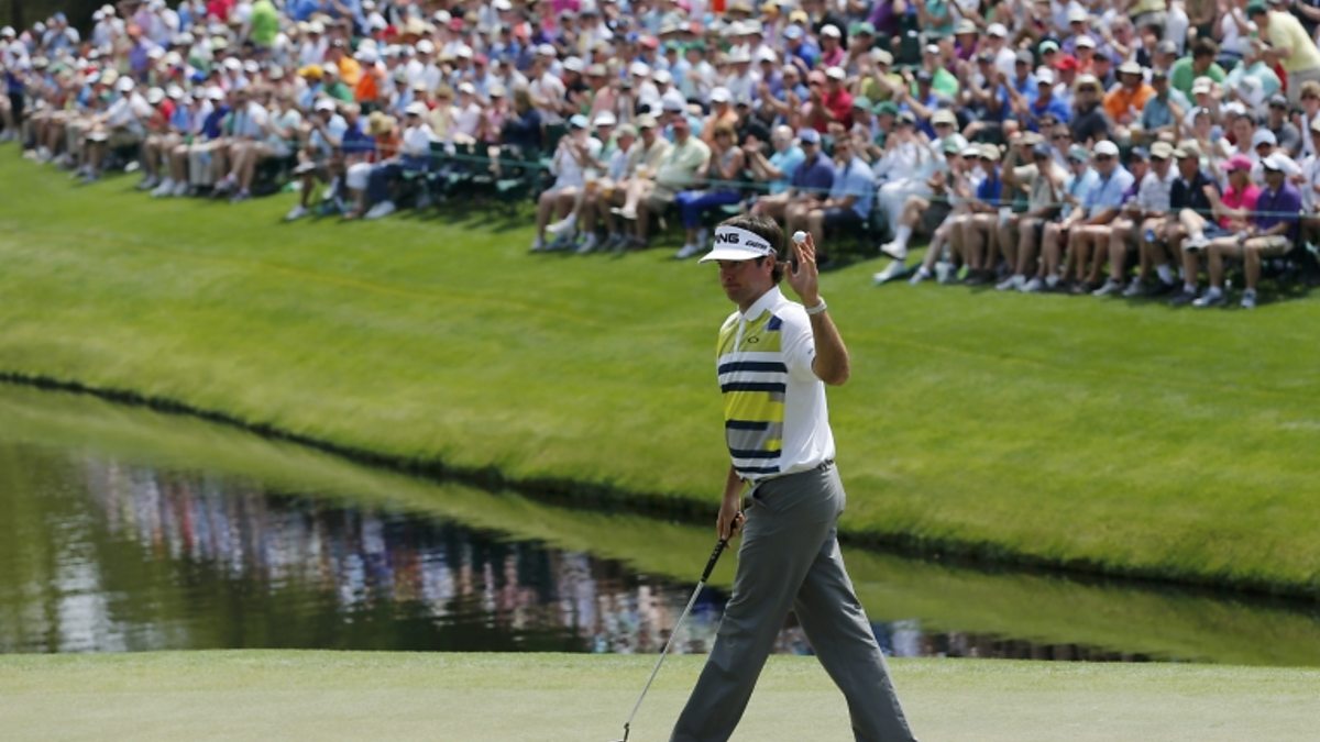 2012 Masters champion Bubba Watson plays a great tee shot at the par 3 16th, narrowly missing a hole-in-one. He would go on to make his 5th birdie in a row to lead the tournament by four shots. Watson finished his second round seven under par. This clip is from The Masters Live on 11 April 2014.