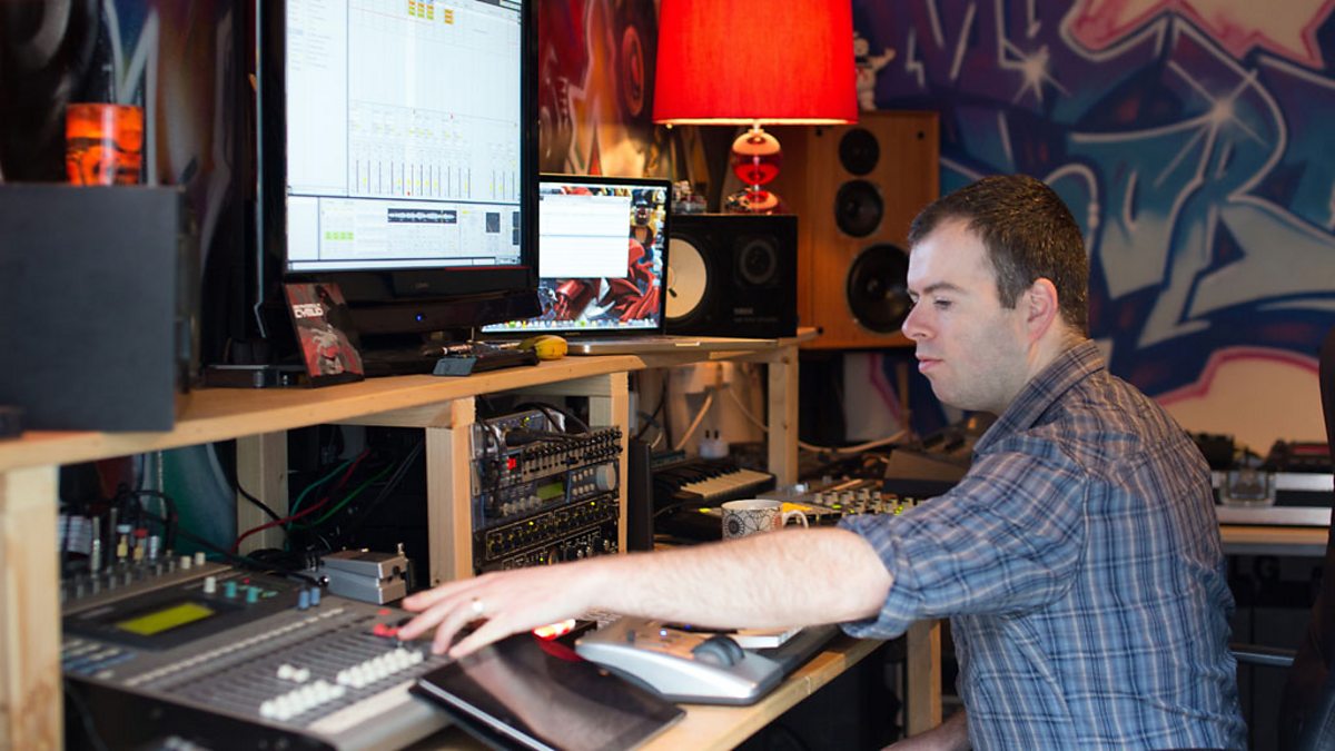Griff Lynch a Siôn 'Maffia' Jones yn cyfarfod â cherddorion i jamio a sgwrsio.