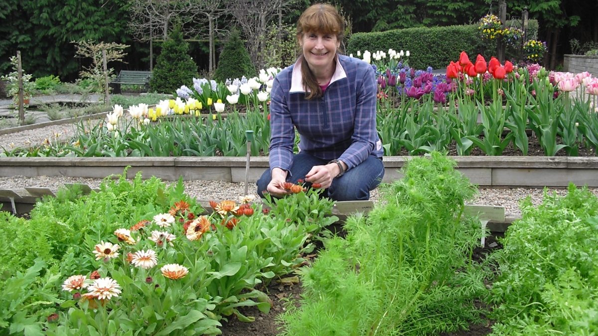Carole looks at a trial from last year, she sowed hardy annuals late in August. Carole then adds to the succession she’s created with a new sowing.