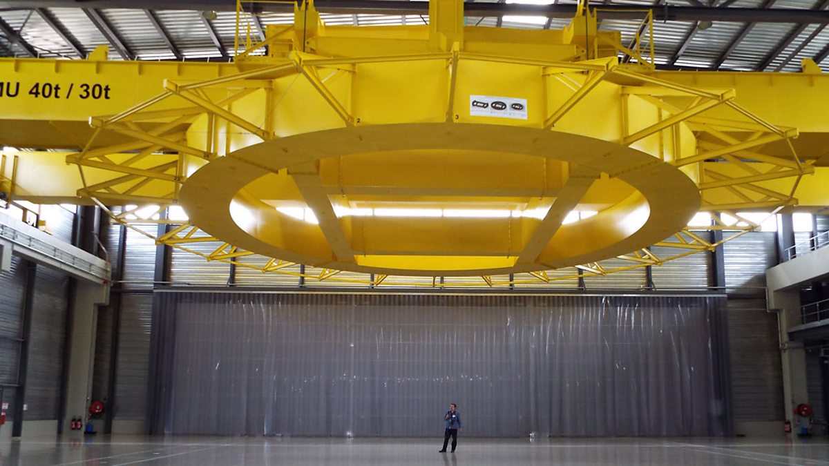 (Photo: The empty magnet-winding hall at ITER, BBC copyright)