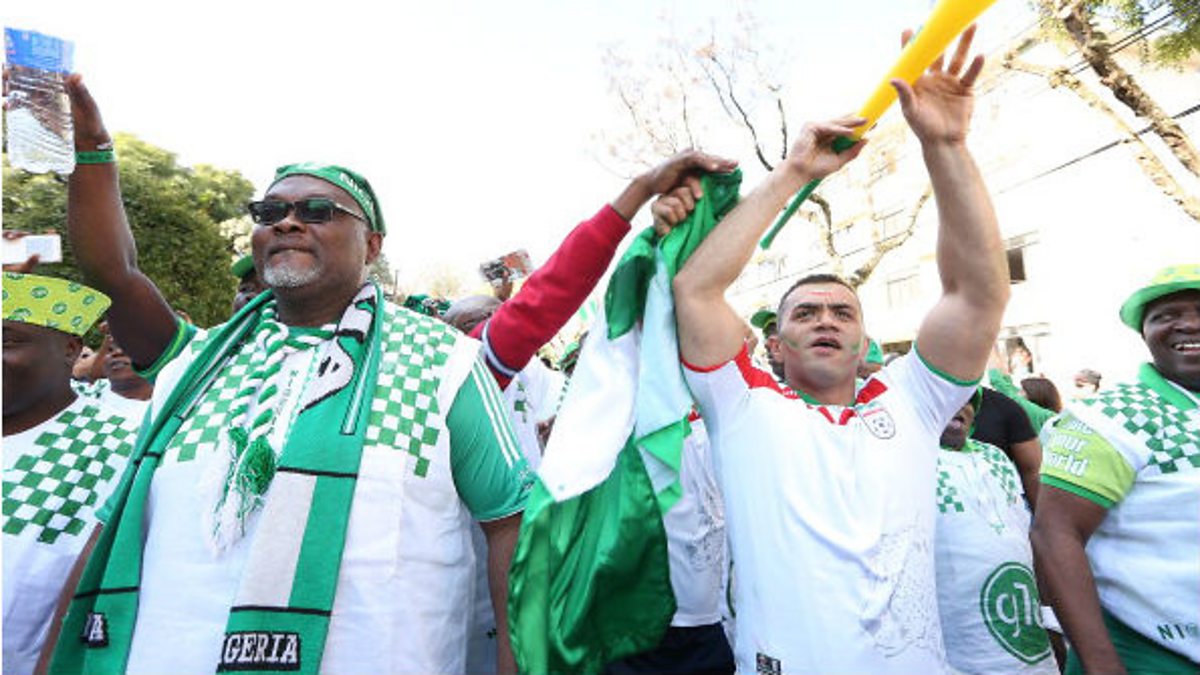 Photo: Nigeria and Iran fans arrive for their match against each other at the 2014 FIFA World Cup n Curitiba, Brazil. Credit: Giuliano Gomes/Getty Images