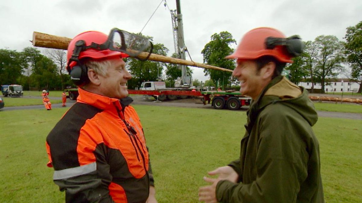 Two of the most visible sites on the Ingliston skyline are the 100ft climbing poles in the countryside area. They are used during the show for demonstrations and competitions of pole climbing and lumberjack skills. The poles that had stood for the last seven years were starting to deteriorate so last month they were replaced with two Douglas Fir trees from Kirkennan Forest near Castle Douglas. Last month Dougie was at Ingliston to see the new poles being erected.