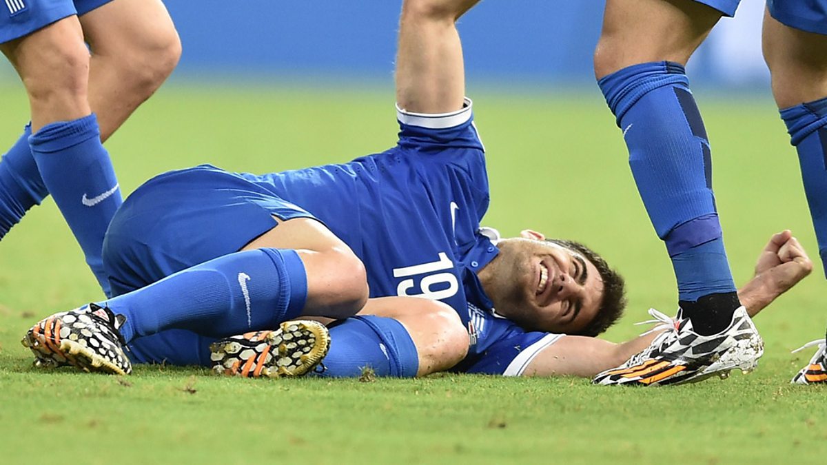 Greece's Sokratis Papastathopoulos scores late on to take Costa Rica to extra time in 2014 World Cup.