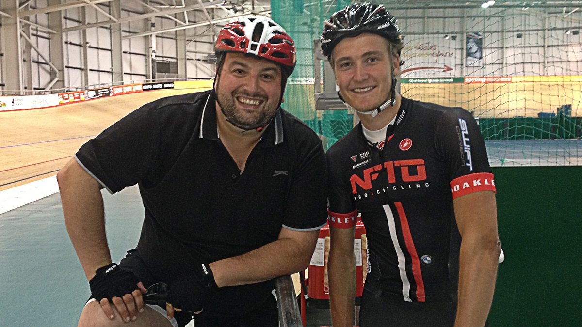 Wynne gets on the saddle and tries some Commonwealth-standard cycling at the Wales National Velodrome in Newport, with Sam Harrison from the Wales cycling team.