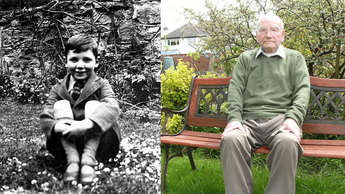 Image: Ralph Hoare in the garden of his Plymouth childhood home (left), and at his present home in Gloucester (right)