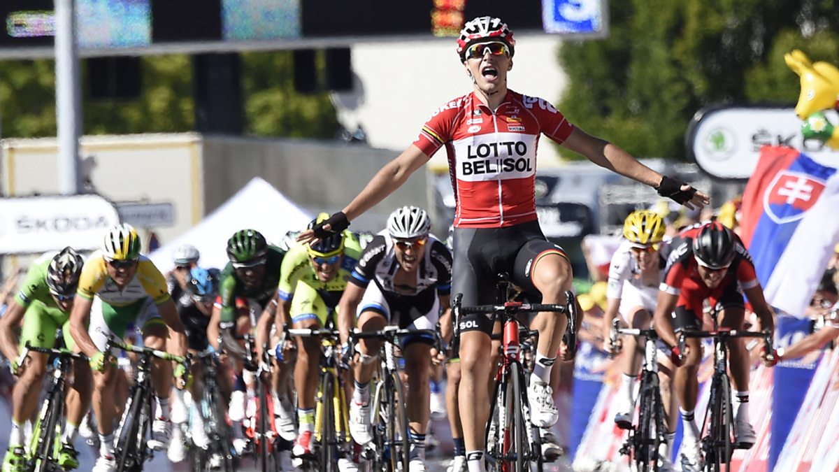 Frenchman Tony Gallopin, of Lotto-Belisol, wins Stage 11 of the Tour de France from Besancon to Oyonnax.