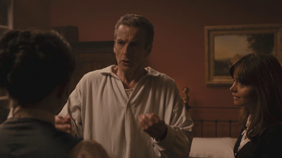 Clara tries to calm the new Doctor in this scene from Deep Breath.
