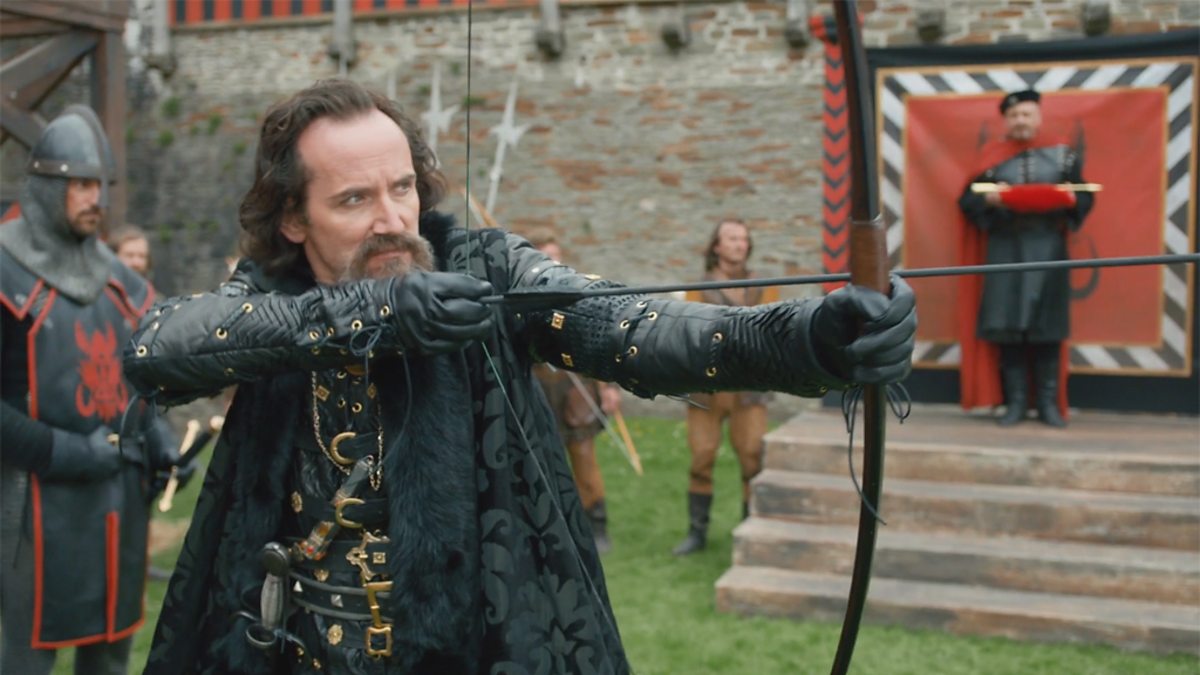 Robin (Tom Riley) and the Sheriff (Ben Miller) compete for the golden arrow.
