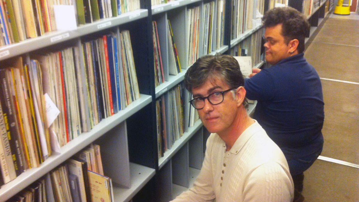 Idris yn ymweld a Dan Griffiths yn y Llyfrgell Genedlaethol